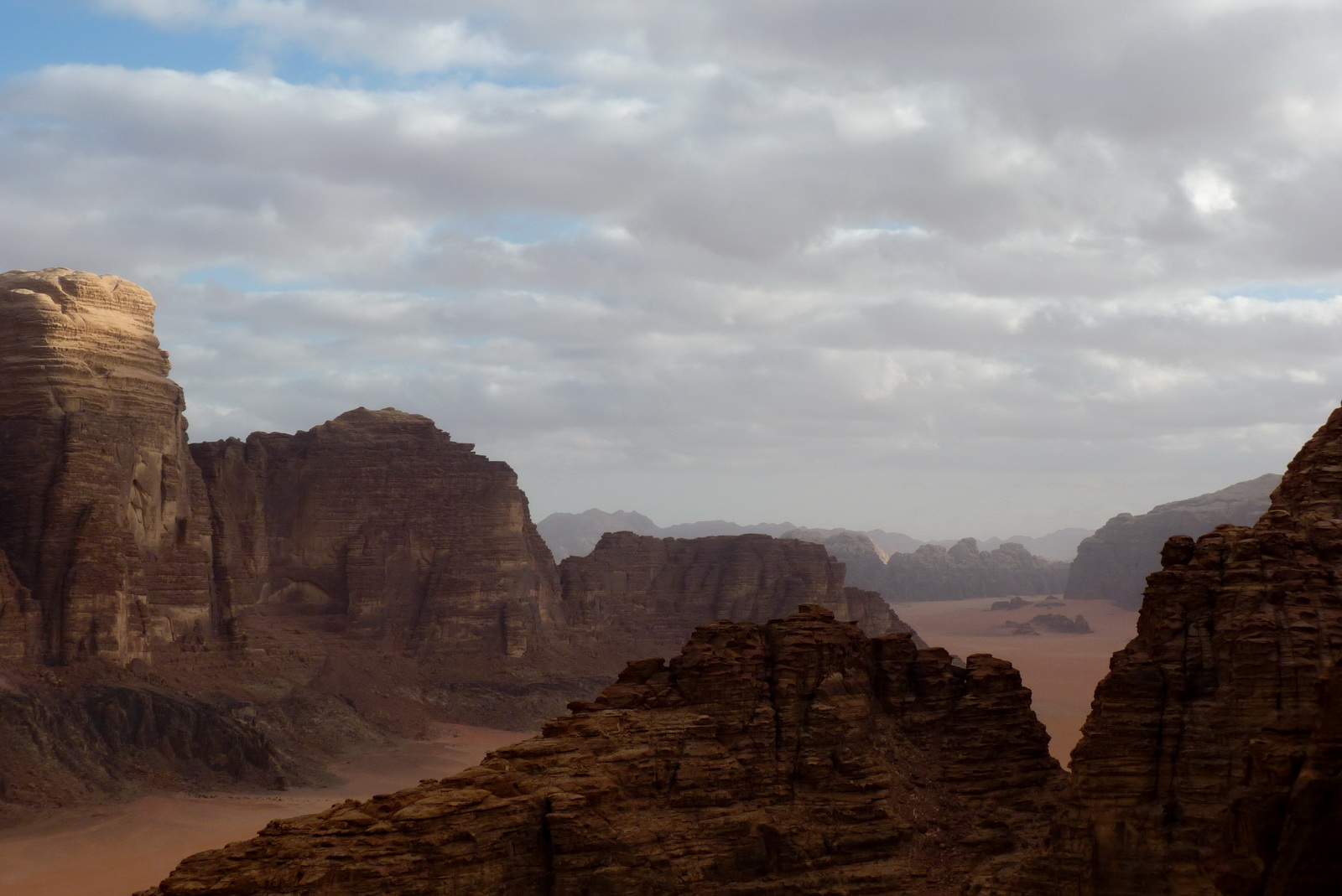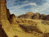 Wadi Rum, ktoré sa nachádza skoro až pri hranici Saudskej Arábii. Prvý pohľad na