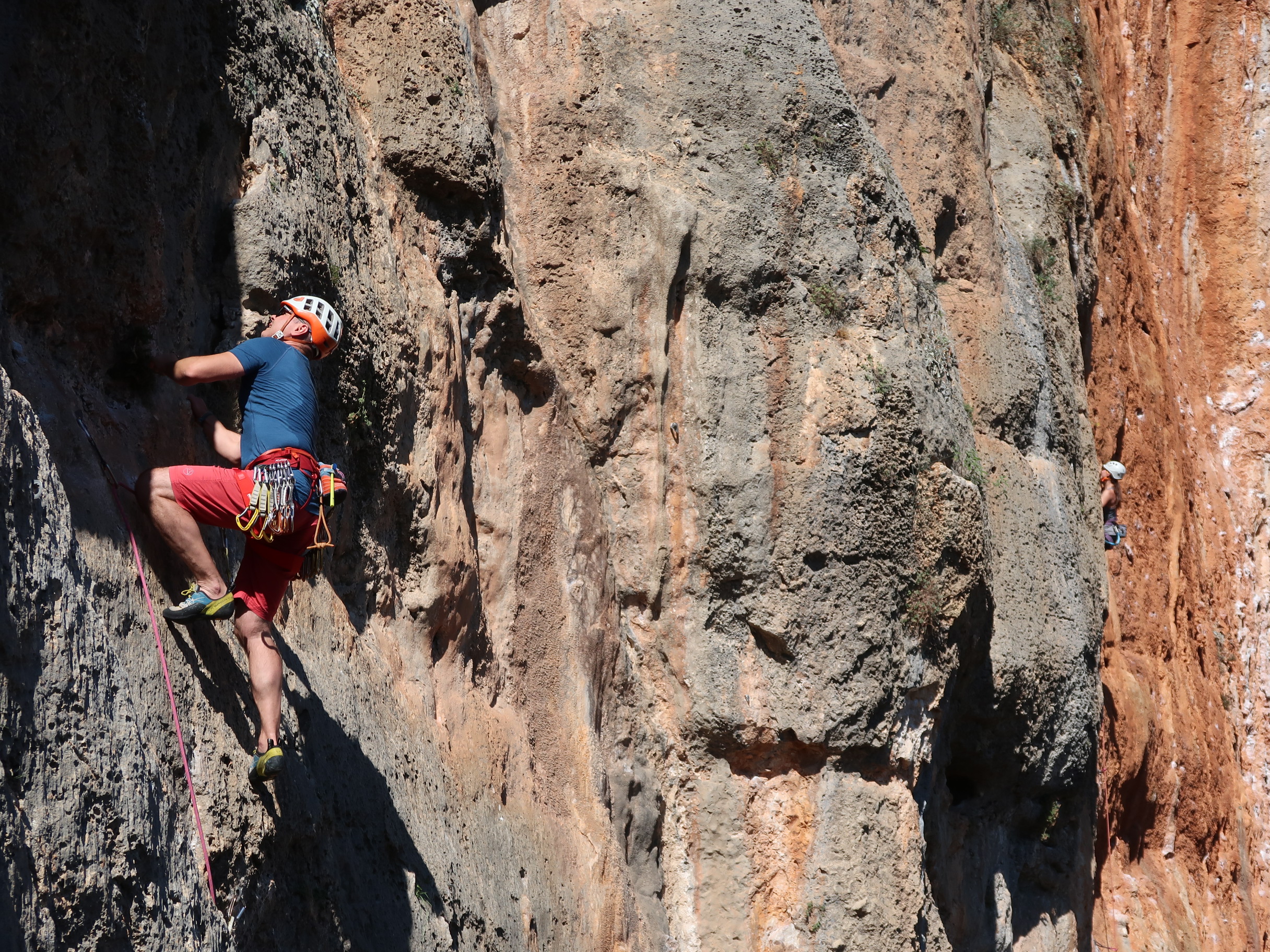 Leonidio na nás zapôsobilo veľmi pozitívne. Výhodou je, že nejde o jeden skalný masív, ale o množstvo sektorov roztrúsených po krajine, takže charakter lezenia sa mení od oblasti k oblasti – od technických platní cez tufové previsy až po dlhé, červené steny nad mestečkom. Každý si nájde to svoje. Za nás veľká spokojnosť a určite odporúčame — a pravdepodobne sa sem ešte vrátime.