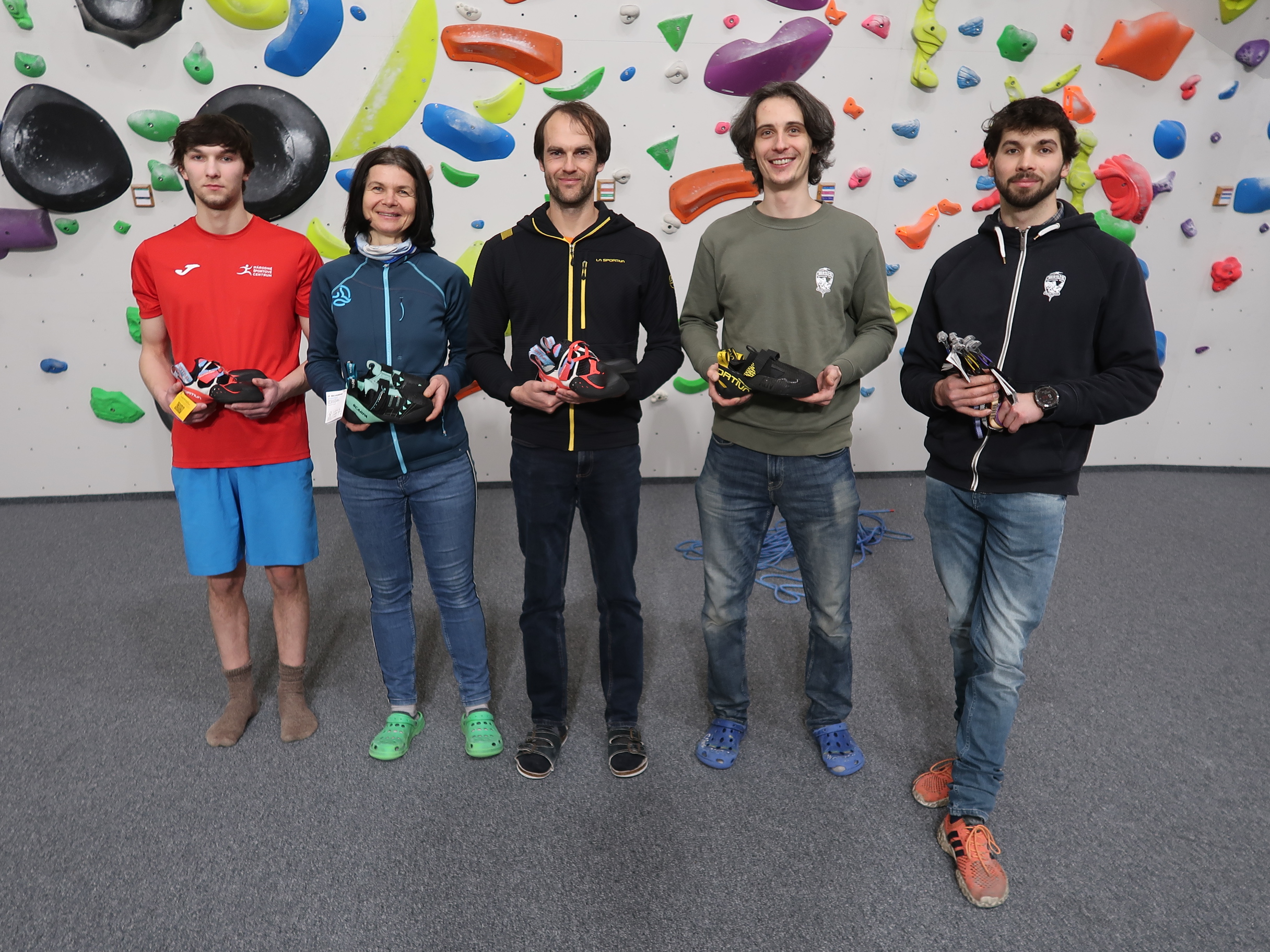 Ako poďakovanie za reprezentáciu klubu sme im odovzdali symbolickú pozornosť – nové lezečky a lezecký materiál. Zároveň sme spolu diskutovali o možnostiach, ako sa môžu zapojiť do zlepšovania tréningového procesu našich detí a mládeže.